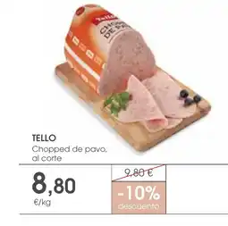 | TELLO Chopped de pavo 1 kg | Supermercados Plaza | 9,80 € | 8,80 € | -10% descuento | 11 julio 2025 | 30 julio 2025 | |