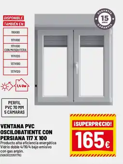 Brico Depôt Ventana pvc oscilobatente blanca con persiana 117 x 100.60 mm ofertaVentana pvc oscilobatente blanca con persiana 117 x 100.60 mmBrico Depôt145,00 €30 enero 202626 febrero 2026