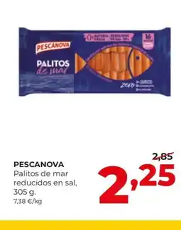 | PESCANOVA Palitos de mar reducidos en sal 305 g | Alimerka | 2,85 € | 2,25 € | 0,60 € Descuento | 09 febrero 2026 | 15 febrero 2026 | |
