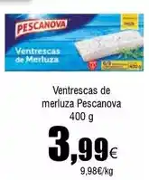 | PESCANOVA Ventrescas de Merluza 400 g | FROIZ | 6,45 € | 5,59 € | 0,86 € Descuento | 08 mayo 2025 | 26 mayo 2025 | |