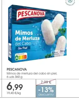 | PESCANOVA Mimos de merluza del cabo sin piel, 6 uds 360 g | Supermercados Plaza | 7,99 € | 6,99 € | -13% descuento | 23 abril 2026 | 06 mayo 2026 | |