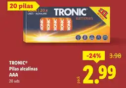 2Lidl TRONIC Pilas alcalinas AAA ofertaTRONIC Pilas alcalinas AAALidl3,98 €2,99 €-24%12 enero 202618 enero 2026 Mirar oferta