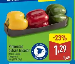 1ALDI Pimientos dulces tricolor ofertaPimientos dulces tricolor 500 gALDI1,69 €1,29 €-23%02 febrero 202608 febrero 2026 Mirar oferta