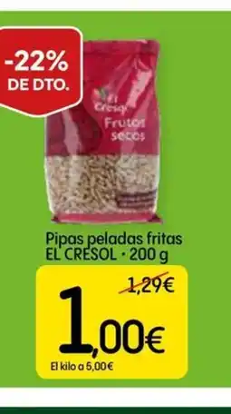Dialprix EL CRESOL Pipas peladas fritas ofertaEL CRESOL Pipas peladas fritas 200 gDialprix1,29 €1,00 €-22% DE DTO08 enero 202628 enero 2026