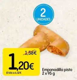 2Dialprix Empanadilla pisto ofertaEmpanadilla pisto 2 x 95 gDialprix1,58 €1,20 €0,38 € Descuento29 enero 202618 febrero 2026 Mirar oferta