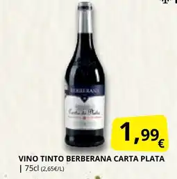 Plenus Supermercados BERBERANA CARTA DE PLATA Viño Tierra de Castilla ofertaBERBERANA CARTA DE PLATA Viño Tierra de Castilla 75 clPlenus Supermercados3,95 €05 febrero 202618 febrero 2026