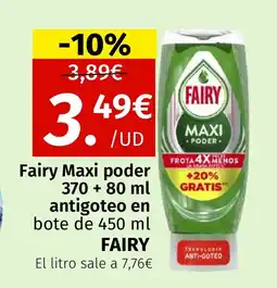 | 2 | FAIRY Maxi poder 450 ml | Maskom Supermercados | 3,89 € | 3,49 € | -10% | 27 marzo 2026 | 03 mayo 2026 | Mirar oferta | |