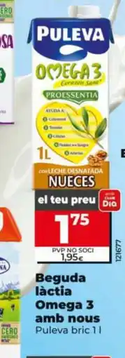 | Puleva - bebida lactea omega 3 con nueces | Dia | 1,90 € | 1,69 € | 0,21 € Descuento | 14 agosto 2024 | 20 agosto 2024 | |