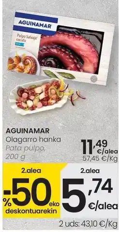 ![]() | AGUINAMAR Pata de pulpo cocido 200 g | Eroski | 10,99 € | 5,49 € | -50% de descuento | 18 septiembre 2025 | 30 septiembre 2025 |