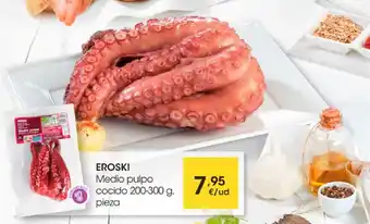 ![]() | Eroski Medio pulpo cocido 200-300g | Eroski | 7,95 € | 03 marzo 2022 | 15 marzo 2022 | ||