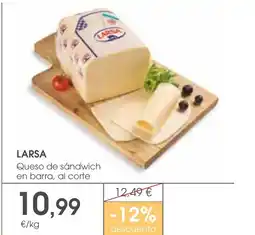 | LARSA Queso de sandwich en barra, al corte 1 kg | Supermercados Plaza | 12,49 € | 10,99 € | -12% descuento | 10 abril 2026 | 22 abril 2026 | |