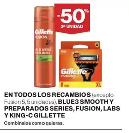 GILLETTE En todos los recambios blue3 smoothy preparados series, fusion, labs y king-c