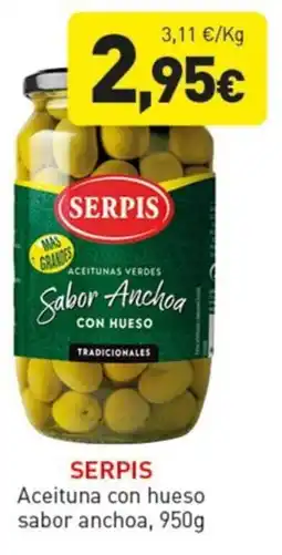 | SERPIS Aceituna con hueso sabor anchoa 950 g | Hiperber | 2,95 € | 16 abril 2026 | 06 mayo 2026 | |||