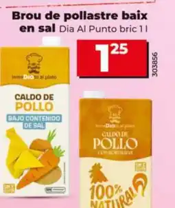 Maxi Dia DIA AL PUNTO Brou de pollastre baix en sal ofertaDIA AL PUNTO Brou de pollastre baix en sal 1 LMaxi Dia1,25 €14 enero 202620 enero 2026