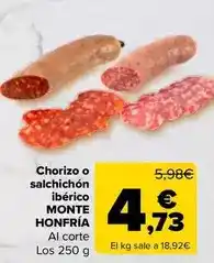 | 1 | Monte honfria - chorizo o salchichon iberico | Carrefour | 5,98 € | 4,73 € | 1,25 € Descuento | 15 enero 2026 | 26 enero 2026 | Mirar oferta | |