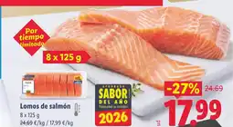 | Lomos de salmón 8 x 125 g | Lidl | 25,78 € | 19,99 € | -22% | 04 agosto 2025 | 10 agosto 2025 | |