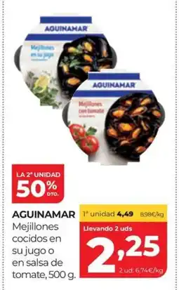 | AGUINAMAR Mejillones cocidos en su jugo o en salsa de tomate 500 g | Alimerka | 2,25 € | 50% | 27 octubre 2025 | 02 noviembre 2025 | ||