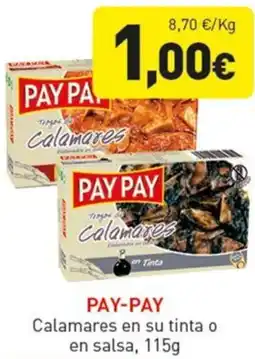 | PAY-PAY Calamares en su tinta o salsa americana 115 g | Hiperber | 1,00 € | 11 septiembre 2025 | 01 octubre 2025 | |||