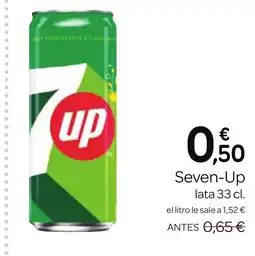 | SEVEN-UP 33 cl | Supermercados El Jamón | 0,65 € | 0,50 € | 0,15 € Descuento | 23 abril 2026 | 27 mayo 2026 | |