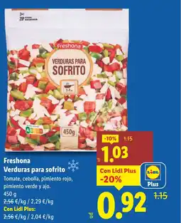 5Lidl FRESHONA Verduras para sofrito ofertaFRESHONA Verduras para sofrito 450 gLidl1,23 €1,15 €0,08 € Descuento16 febrero 202622 febrero 2026 Mirar oferta