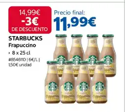 Costco STARBUCKS Frapuccino en botella de vidrio ofertaSTARBUCKS Frapuccino en botella de vidrio 8 x 25 clCostco11,99 €01 septiembre 202528 septiembre 2025