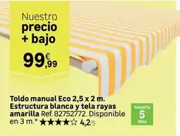 Leroy Merlin Eco - toldo manual 2,5 x 2 m. estructura blanca y tela rayas amarilla oferta