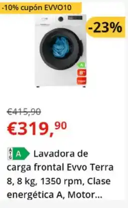 Worten Lavadora de carga frontal Evvo Terra 8,8 kg, 1350 rpm, Clase energética A, Motor... oferta