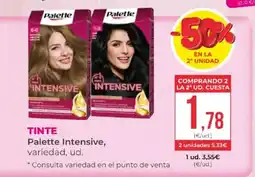 Supermercados Lupa PALETTE Tinte intensive creme color varios colores ofertaPALETTE Tinte intensive creme color varios coloresSupermercados Lupa3,49 €1,75 €1,74 € Descuento19 marzo 202608 abril 2026