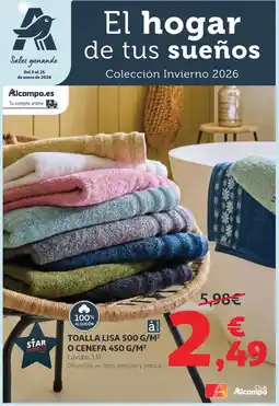 | Toalla | Alcampo | 6,98 € | 4,99 € | 1,99 € Descuento | 09 enero 2026 | 25 enero 2026 | |