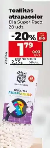 | Dia super paco - toallitas atrapacolor | Dia | 2,25 € | 1,79 € | 0,46 € Descuento | 07 enero 2026 | 13 enero 2026 | |