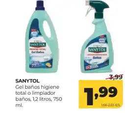 | SANYTOL Gel baños higiene total o limpiador baños 1.2 L | Alimerka | 3,99 € | 1,99 € | 2,00 € Descuento | 23 abril 2026 | 20 mayo 2026 | |