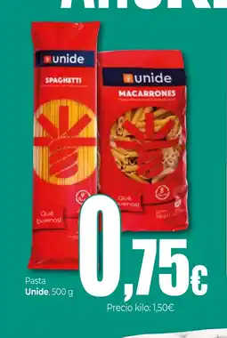 UDACO Unide - macarrones, spaghetti, fideo cabellin, espirales, tallarin o fideo entrefino ofertaUnide - macarrones, spaghetti, fideo cabellin, espirales, tallarin o fideo entrefinoUDACO0,75 €13 febrero 202525 febrero 2025