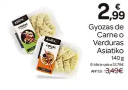 | ASIATIKO Gyozas de Carne o Verduras 140 g | Supermercados El Jamón | 3,49 € | 3,19 € | 0,30 € Descuento | 27 marzo 2025 | 29 abril 2025 | |
