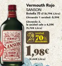 | SANSON Vermouth Rojo 75 cl | Gadis | 1,98 € | 2a unidad 70% | 15 enero 2026 | 21 enero 2026 | ||