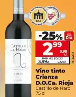 | Vino tinto Crianza Rioja D.O. Ca Castillo de Haro 75 cl | Dia | 3,25 € | 22 septiembre 2021 | 28 septiembre 2021 |