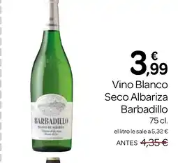 | BARBADILLO Vino Blanco Seco Albariza 75 cl | Supermercados El Jamón | 4,35 € | 3,99 € | 0,36 € Descuento | 26 febrero 2026 | 25 marzo 2026 | |
