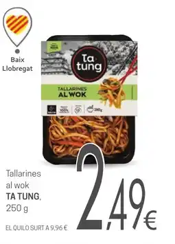Valvi Supermercats TA TUNG Tallarines al wok ofertaTA TUNG Tallarines al wok 250 gValvi Supermercats2,49 €01 enero 202628 enero 2026