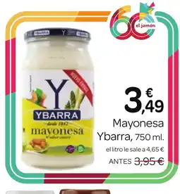 1Supermercados El Jamón YBARRA Mayonesa ofertaYBARRA Mayonesa 750 mlSupermercados El Jamón3,95 €3,49 €0,46 € Descuento23 abril 202627 mayo 2026 Mirar oferta