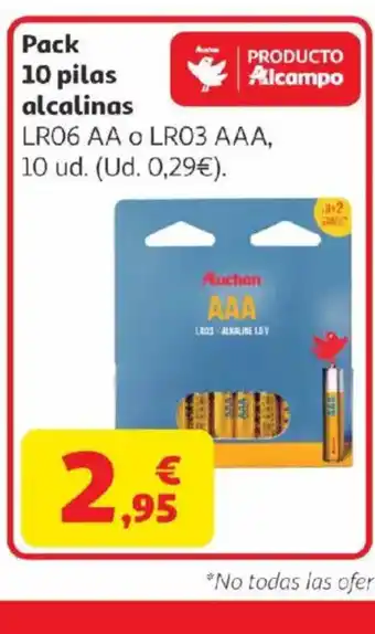 Pack 10 pilas alcalinas en promoción en Alcampo