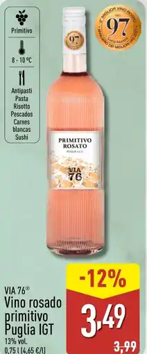 ALDI VIA 76 Vino rosado primitivo Puglia IGT oferta