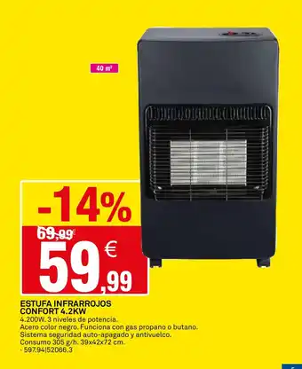 Estufa infrarrojos confort 4.2kw ahora en promoción en Bricoking✅ Válido desde el 7-01 hasta el 1-03.