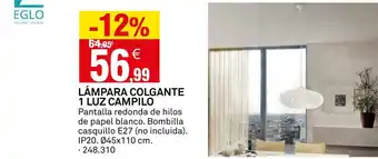 Lámpara colgante 1 luz campilo ahora en promoción en Bricoking✅ Válido desde el 7-01 hasta el 1-03.