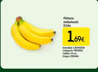 Esta oferta está disponible en varias tiendas, consulta todos los productos para obtener la Plátano embolsado más barata. Si quieres saber si este producto tiene un mayor descuento en otra tienda, consulta la categoría 'Supermercados'. También te pueden interesar estas ofertas: Platano de canarias, Plátano canarias y Plátano de canarias igp.
