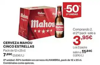 Mahou - cerveza cinco estrellas en promoción en El Corte Inglés