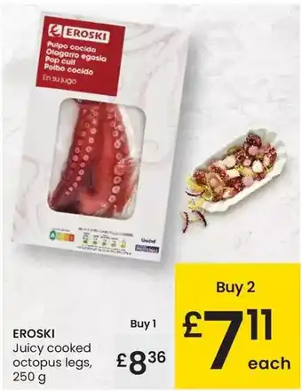 Eroski - juicy cooked octopus legs en promoción en Eroski