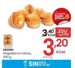 ¡Busca el producto más barato entre todas las ofertas! Si quieres saber si Eroski tiene el mayor descuento para Eroski - magdalena rústica, compáralo en la página del Tema o con otras tiendas.