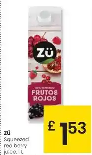 Zu - squeezed red berry juice ahora en promoción en Eroski✅ Válido desde el 29-01 hasta el 11-02.