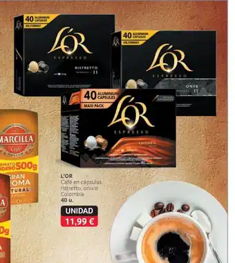 Esta oferta está disponible en varias tiendas, consulta todos los productos para obtener la L'OR Café en cápsulas ristretto, onix o Colombia más barata. Si quieres saber si este producto tiene un mayor descuento en otra tienda, consulta la categoría 'Supermercados'. También te pueden interesar estas ofertas: L'or - cafe colombia, ristretto o sontuoso, L'OR Cafè en càpsules Ristretto y L'or - capsulas de cafe.