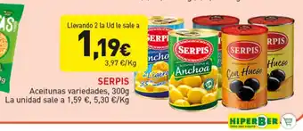 SERPIS Aceitunas variedades ahora en promoción en Hiperber✅ Válido desde el 5-03 hasta el 25-03.