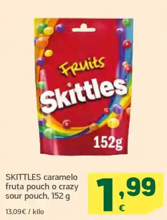 SKITTLES caramelo fruta pouch o crazy sour pouch ofertas y promociones en línea disponibles en HiperDino